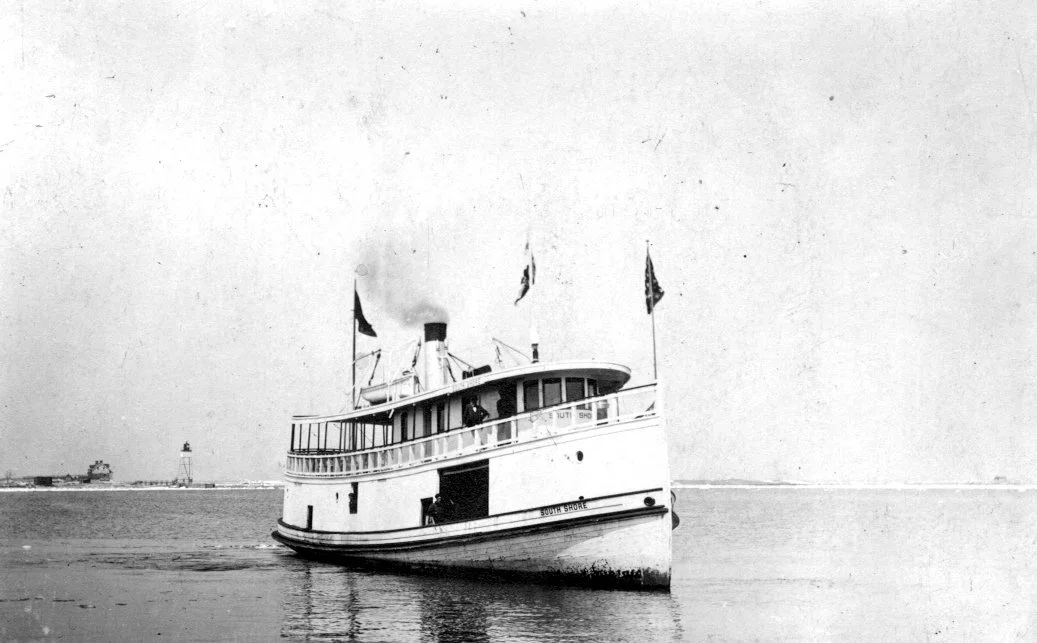 Packet steamer South Shore in harbor, circa 1910. The South Shore wrecked off Au Sable Point in 1912.